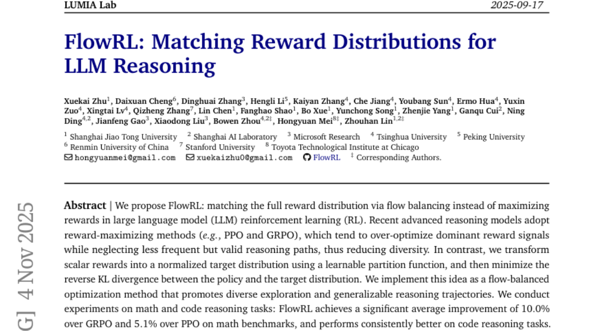 FlowRL: Matching Reward Distributions for LLM Reasoning