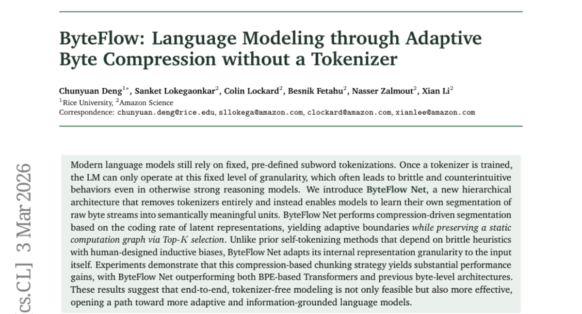 ByteFlow: Language Modeling through Adaptive Byte Compression without a Tokenizer