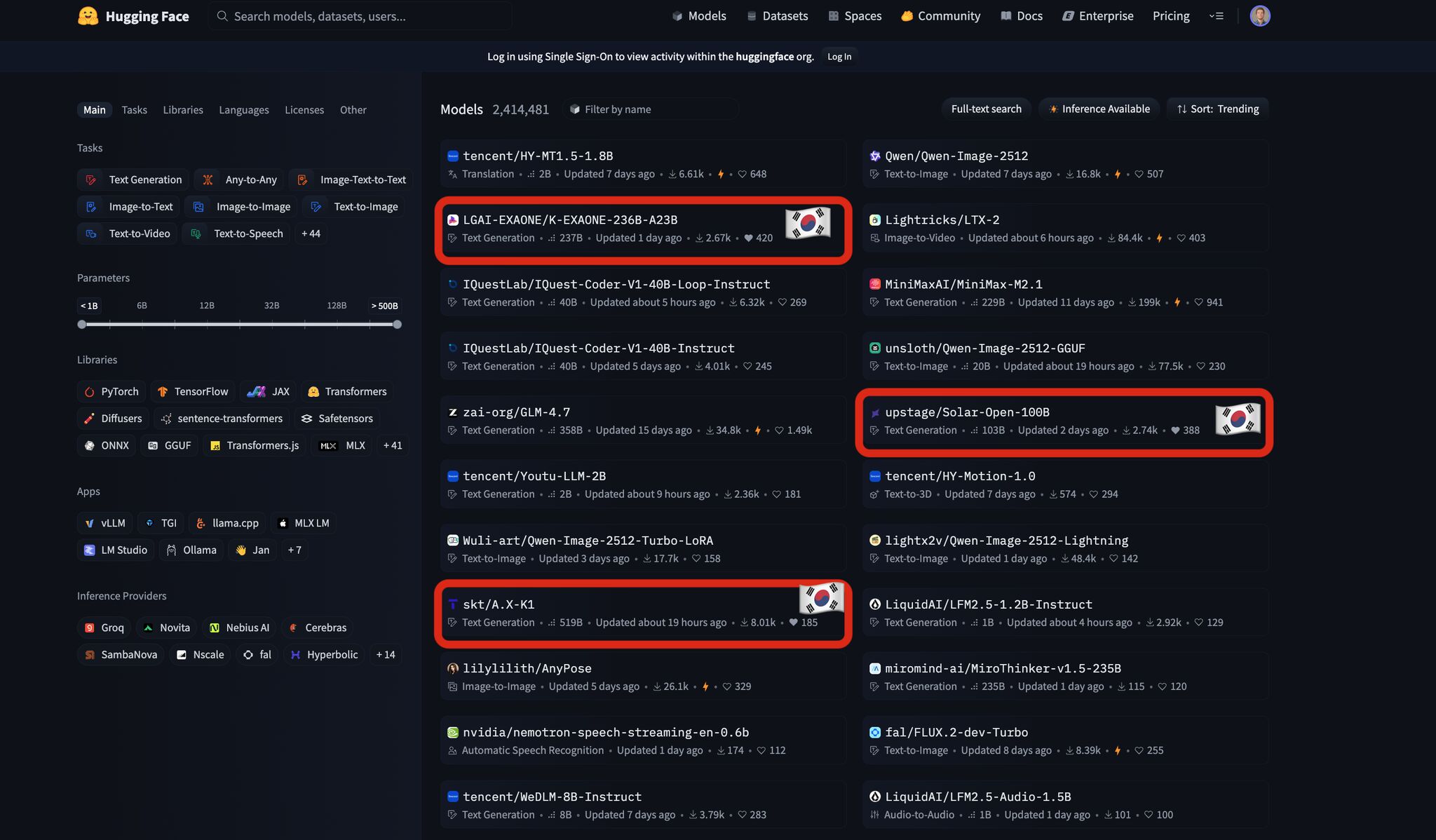 At the national level, governments are taking action. South Korea's National Sovereign AI Initiative launched mid-2025 named national champions LG AI Research, SK Telecom, Naver Cloud, NC AI, and Upstage to produce competitive domestic models. Three models from South Korea trended simultaneously on Hugging Face Hub in February 2026. In March 2026, In 2026, South Korea and U.S. startup Reflection AI announced a data center partnership, also bringing frontier open weight models to South Korea.